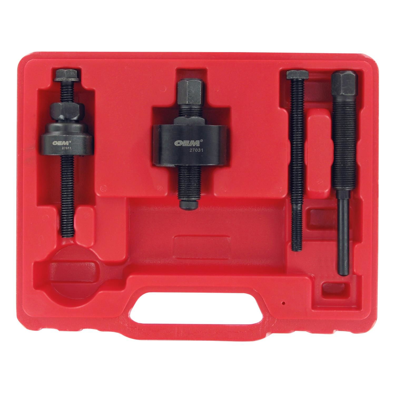 The oemtools pulley puller installer kit removes pressed on one or two groove pulleys from alternators and power steering pumps without damage.